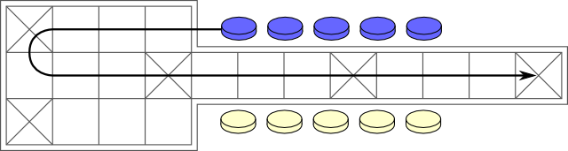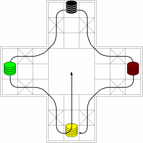 - T'shu-p'u set up, with the movement path for yellow indicated.