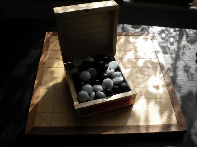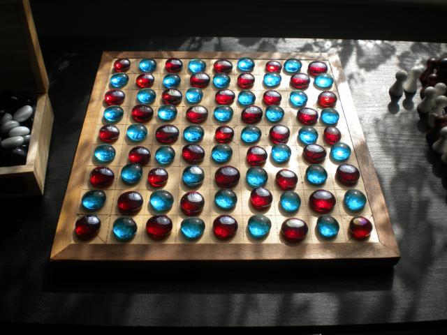 - The zamma board set out for play.