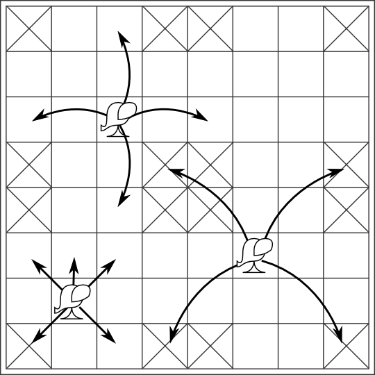 - The various moves of the elephant in chaturanga