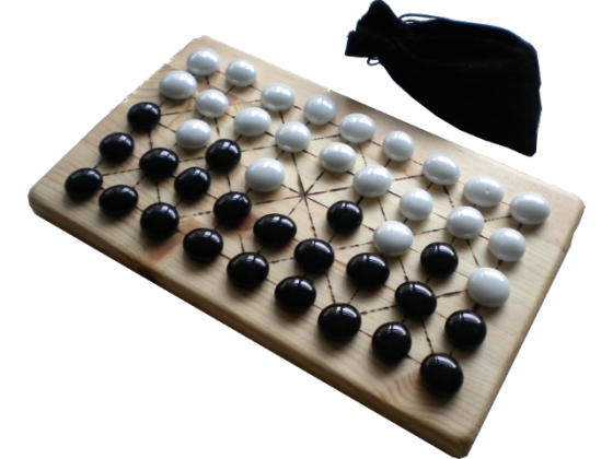 - Yote wooden board game with pebbles