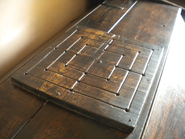 - Two sides of the gaming board from Gokstad, showing hnefatafl on one side and nine men's morris on the other.