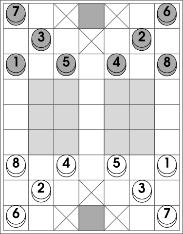 - Starting layout for ludus latrunculorum with dux.