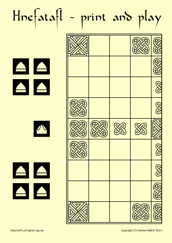 This print-and-play file, borrowed from the site Hnefatafl: the Game of the Vikings, is designed to be printed on three sheets of A4 paper or card. An optional fourth sheet contains instructions for assembly and play.