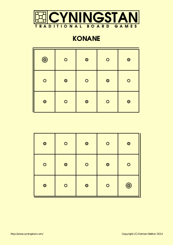 This print-and-play file adopts a size of 10x10 for the game. The board and pieces fit in five sheets of A4 or US Letter card, with the instructions taking up a sixth sheet, which you can print or not as you please.