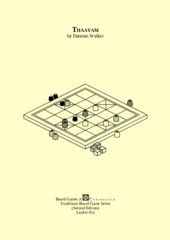 Thaayam is a race game from southern India. Played on a square board, the game is for up to four players. Each has four pieces, and must race them to the centre of the board around a spiral-shaped route.