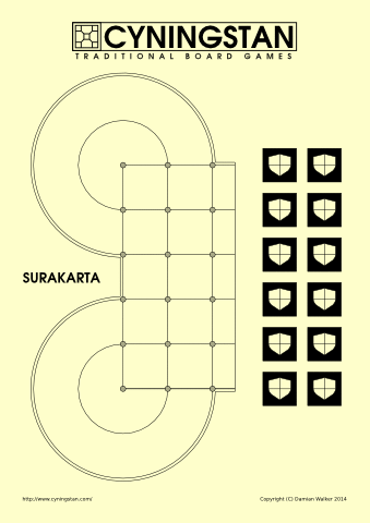 This print-and-play PDF file is designed to be printed on two sheets of A4 or US Letter card, with a third sheet holding the rules if desired. The third sheet also has assembly instructions.