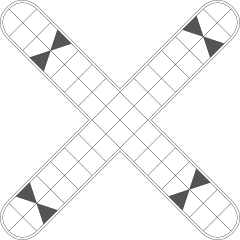 14. A player landing in one of the rounded squares at the end of the cross receives another turn.