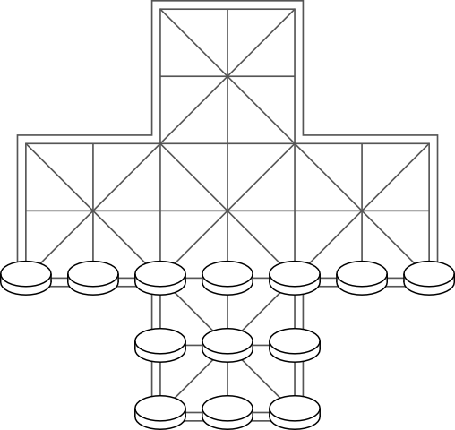 The game is played on a cross-shaped board, known to modern players as a peg solitaire board. Thirteen geese must trap a fox on this board, while the fox attempts to capture enough geese to prevent them from achieving their objective.