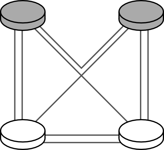 2. The game is played by two players, each having two pieces, which start the game on the corners, again as in the diagram.