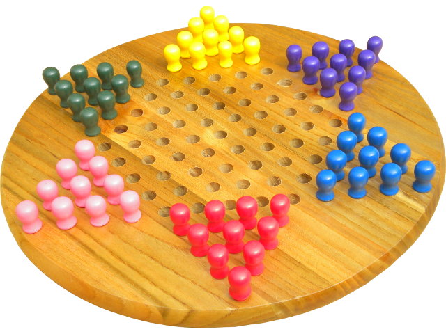 Chinese checkers is a race game for two, three, four or six players. Unlike most race games, performance is dictated completely by skill rather than any luck element. Players race their pieces from their starting positions, across the board to the opposite end. Pieces move to adjacent spaces, but may also jump over one another like in draughts (though without capturing). It is in the construction of long "ladders" of pieces that may be jumped that a player gets ahead in the game.